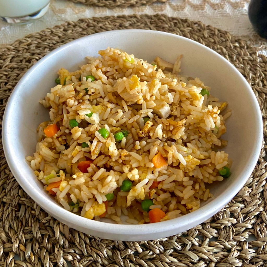 - Once everything is well-mixed and heated through, serve your egg fried rice hot. Garnish with spring onions.